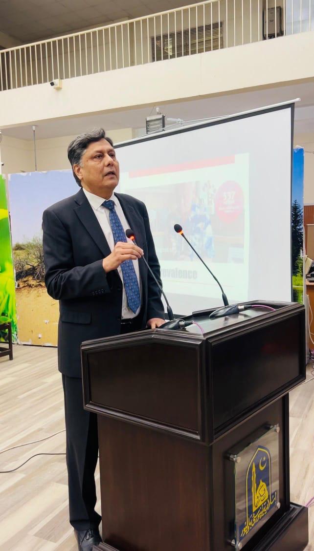 World Diabetes Day was observed at Islamia University Bahawalpur with Prof. Qazi Masroor Ali as speaker, and the Vice Chancellor IUB as Chief Guest, joined by Dr. Tanvir Shah, Madam Sadia Bilal MPA, and Madam Fouzia Qureshi Ex-MPA. The interactive session focused on prevention of Diabetes Mellitus, lifestyle modification, and evidence-based management of its complications. Faculty members, students, and distinguished guests participated actively, reinforcing the commitment to a healthier and diabetes-aware community.